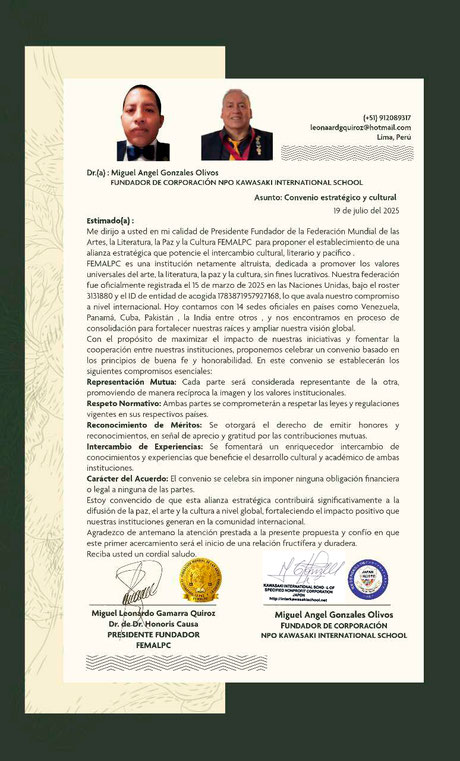Representante Acreditado por la NPO Kawasaki International School, Japón